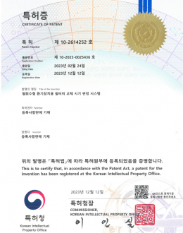 특허 제10-2614252호 열회수형 환기장치용 필터의 교체 시기 판정 시스템